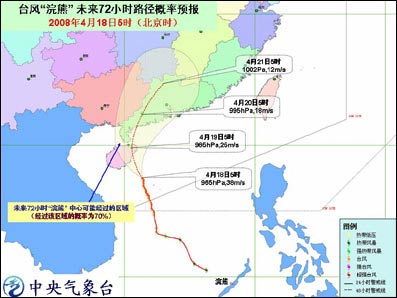 預(yù)計(jì),臺(tái)風(fēng)中心將以每小時(shí)15公里左右的速度向西北偏北方向移動(dòng),將于今天下午到明天白天在海南萬(wàn)寧到文昌一帶沿海登陸,也有可能擦過(guò)海南東部沿海繼續(xù)向北移動(dòng),逐漸向廣東西部沿?拷,強(qiáng)度趨于減弱。