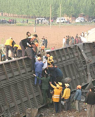 中新網(wǎng)4月28日電 今天凌晨4點(diǎn)41分,北京開往青島的T195次旅客列車運(yùn)行至山東省境內(nèi)膠濟(jì)鐵路周村至王村間脫線,與煙臺至徐州的5034次客車相撞。事故發(fā)生后,中國鐵道部和山東省委、省政府已迅速啟動(dòng)緊急預(yù)案。鐵道部部長劉志軍、山東省委書記姜異康、省長姜大明等已趕赴事故現(xiàn)場。