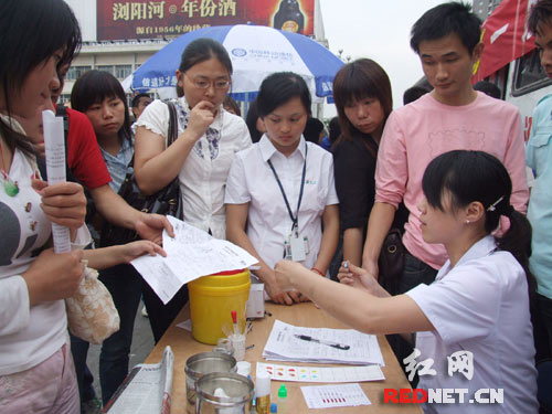 14日,長沙市黃興路步行街中心廣場,祈福、捐款、獻(xiàn)血等多種募捐活動(dòng)從早到晚幾乎沒有間歇。長沙各大高校、企業(yè)紛紛發(fā)起為災(zāi)區(qū)獻(xiàn)血活動(dòng),獻(xiàn)血排出百米長隊(duì) 采血量是往日6倍。晚7時(shí)45分,來自可口可樂選拔出的6位火炬手手持“祥云”火炬與現(xiàn)場數(shù)百長沙市民一同在手腕上綁上黃絲帶、手拿一支獻(xiàn)花、捧起一支蠟燭,在廣場里許下心愿,祈求汶川地震的陰霾盡快散去。