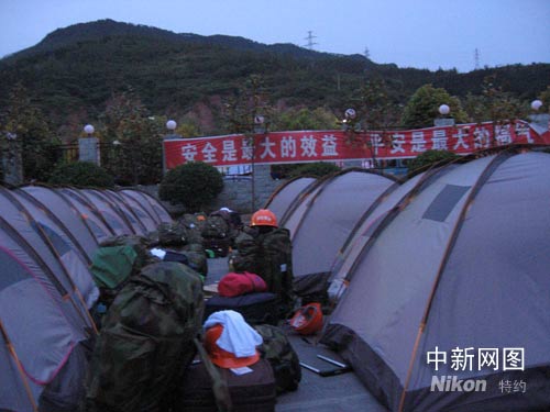 突擊隊連夜趕赴目的地廣元市,圖今天凌晨一點半突擊隊到達廣元,圖為突擊隊在野外露營現(xiàn)場。