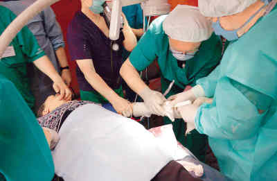 5月21日,俄羅斯醫(yī)生為黃文芬老人做手術(shù)。曾 碩攝