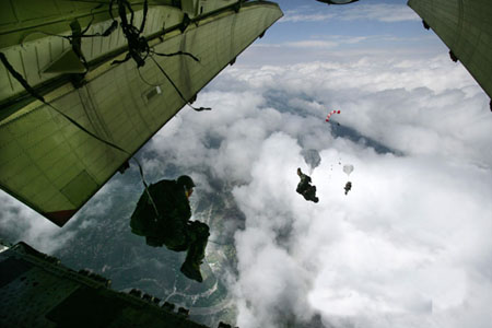 5月14日,中國(guó)空軍在汶川境內(nèi)成功空降15人。