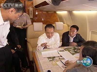 報(bào)道說,一上飛機(jī),溫家寶就和國務(wù)委員兼國務(wù)院秘書長(zhǎng)馬凱等總指揮部成員開始研究抗震救災(zāi)工作。溫家寶說,抗震救災(zāi)工作要在繼續(xù)做好搶救被困群眾的同時(shí),把受災(zāi)群眾安置和恢復(fù)重建工作擺在更加突出的位置。在安置受災(zāi)群眾工作方面,目前有三項(xiàng)十分緊迫的任務(wù):一是解決住的問題,二是解決衛(wèi)生防疫問題,三是解決次生災(zāi)害問題。恢復(fù)重建工作首先要進(jìn)行科學(xué)周密的論證,在此基礎(chǔ)上做好規(guī)劃。