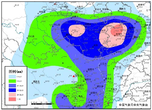 24日晚上到25日白天,四川地震災(zāi)區(qū)將出現(xiàn)小到中雨,理縣、汶川、茂縣、都江堰、綿竹的降水量為3-8毫米;北川的降雨量可達(dá)10-15毫米,并可能伴有雷電天氣,請(qǐng)注意預(yù)防。