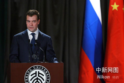 中新網(wǎng)5月24日電 俄羅斯總統(tǒng)梅德韋杰夫今天下午在北京大學(xué)發(fā)表演講時(shí)說,俄中兩國(guó)關(guān)系的牢固基礎(chǔ)就是2001年簽署的《睦鄰友好合作條約》。目前雙方成功地完成落實(shí)了該條約2005-2008年實(shí)施綱要。今年年底之前,雙方將通過至2012年的實(shí)施綱要。