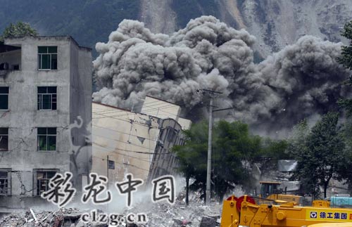 映秀鎮(zhèn)的危險(xiǎn)房屋被爆破拆除。記者 韓億國(guó)攝 (來(lái)源:彩龍中國(guó))