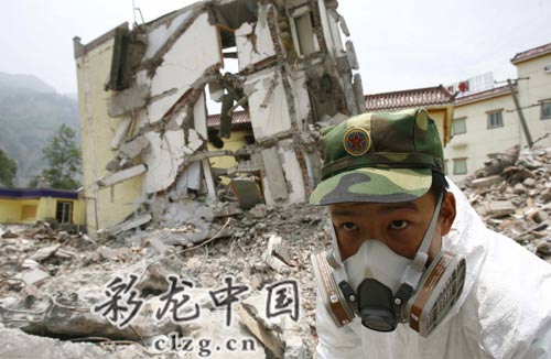 中午12時(shí)左右,在鎮(zhèn)中心附近,尖銳刺耳的哨聲,一聲驚天動(dòng)地的巨響過(guò)后,巨大煙霧騰空而起——這是解放軍駐重慶某部隊(duì)對(duì)一棟居民樓進(jìn)行定向爆破,隨后,身著防化服的戰(zhàn)士進(jìn)入,進(jìn)行遺體清運(yùn)和廢墟清理。連日來(lái),解放軍戰(zhàn)士對(duì)全縣城的街道和土壤一直在進(jìn)行消毒,進(jìn)出車(chē)輛也要噴灑藥水,將發(fā)生疫情的可能性降到最低。
