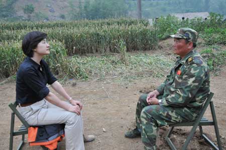 董倩演播室串場:我跟著經(jīng)大忠縣長,從設(shè)在北川中學(xué)的前線指揮部步行到北川的老縣城。在這條路上,不斷能夠迎面遇到從山里面撤出來的,受災(zāi)地區(qū)的群眾。這個時候經(jīng)縣長就會撇下我走上去問,你們從哪來?要撤到哪去?家里的東西帶出來沒有,身上現(xiàn)在還缺點什么?很多人都不知道他是誰。有的人就問,你是誰?這個時候經(jīng)大忠往往不回答。我會替他回答,我說這是經(jīng)縣長,你們的縣長。有個小伙子知道他就是縣長,拍著胸脯說:“縣長你放心,我們行。”我在旁邊靜靜地看著,我看著縣長和普通百姓之間的這種一問一答,從中我看到了在經(jīng)歷過這場巨大的災(zāi)難之后,他們之間彼此信任、信賴的這種關(guān)系。而且我也看到了,他們對于未來的那種希望。