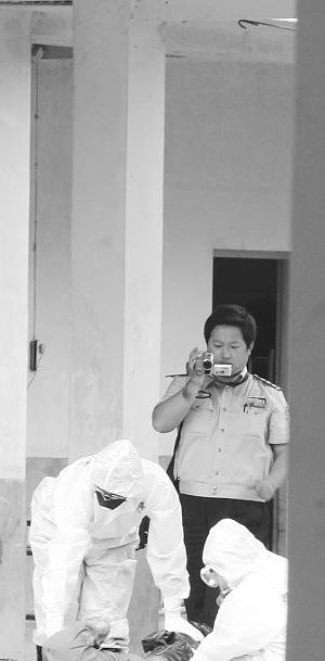 5月24日,法醫(yī)在檢查一具無名遺體。 本報(bào)記者 呂宗恕 攝
