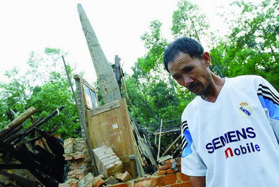 張德林很幸運(yùn),在他剛被老伴叫出屋外時,房子就被龍卷風(fēng)掀倒了。而殷德金很不幸,冰雹過后,他從外面回到家時,房屋全部倒了,他哭喊著叫著妻子,但只有大山的回應(yīng)。村民們聞訊趕來后,從廢墟中扒出了他的妻子,可她再也聽不見人們的叫喊了。