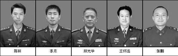 失事機組成員5人:邱光華、李月、王懷遠、陳林、張鵬。