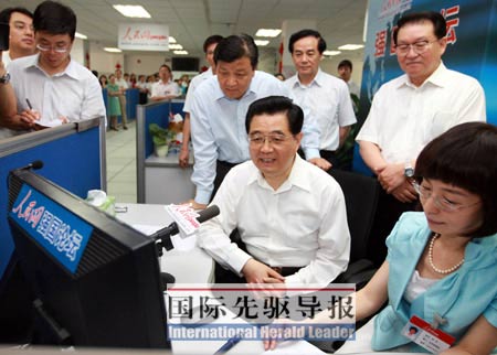 6月20日上午9點(diǎn)12分,人民網(wǎng)“強(qiáng)國(guó)論壇”率先發(fā)出預(yù)告帖:好消息!胡錦濤總書記通過強(qiáng)國(guó)論壇同網(wǎng)友們交流。此帖隨即被國(guó)內(nèi)各大網(wǎng)站轉(zhuǎn)載,短短幾分鐘內(nèi),“胡錦濤即將與網(wǎng)友在線交流的消息”就高高掛在各大新聞網(wǎng)站醒目位置,蜂擁而至的訪問導(dǎo)致強(qiáng)國(guó)論壇一度出現(xiàn)擁堵!秶(guó)際先驅(qū)導(dǎo)報(bào)》記者在一個(gè)小時(shí)內(nèi)數(shù)次嘗試登陸,均無(wú)法打開網(wǎng)頁(yè)或留言系統(tǒng)提示錯(cuò)誤。