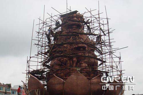 記者日前在貴州省黔西縣采訪時(shí)看到,當(dāng)?shù)卣拶Y打造的巨幅全銅獅像現(xiàn)身十字街頭。這是黔西縣今年“亮麗工程”的一部分。