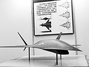 與其他展臺(tái)前熱鬧的情景不同,中國(guó)航空工業(yè)第一集團(tuán)公司沈陽(yáng)飛機(jī)設(shè)計(jì)研究所的展臺(tái)顯得有些冷清,只靜悄悄地?cái)[著一架黑色模型。當(dāng)記者看到機(jī)身上的字樣時(shí),心中不禁一動(dòng),這就是我國(guó)未來無人作戰(zhàn)飛機(jī)“暗劍”的模型。
