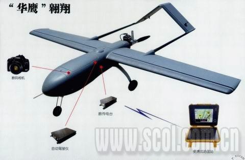 據(jù)介紹,無人機(jī)來自北京中兵光電科技公司,記者隨后聯(lián)系上該公司總經(jīng)理辦公室主任王蕾!啊A鷹’在國內(nèi)處于領(lǐng)先地位,它能在6級風(fēng)下可靠地完成飛行、偵察任務(wù)!蓖趵僬f,飛機(jī)系統(tǒng)采用了先進(jìn)的GPS導(dǎo)航自主飛行,只需要一條100米長的跑道,周圍沒有突出的障礙物,“華鷹”無人機(jī)就可以自主起降。如果采用遙控起降方式,則只需要二三十米長的跑道。無人機(jī)起飛后,一般先盤旋一圈,檢驗飛行狀態(tài),然后就可以按照預(yù)先設(shè)定的航線,自動飛往預(yù)定目標(biāo)執(zhí)行任務(wù)。