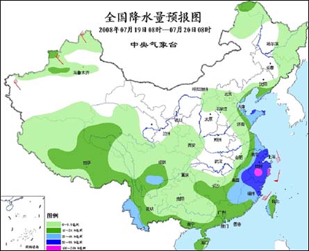 19日08時至20日08時,新疆西北部和沿天山地區(qū)、西藏、青海大部、甘肅南部、寧夏南部、陜西中南部、內(nèi)蒙古東北部、東北西北部和東部、華北中東部、黃淮東部、江淮東部、江南大部、華南大部以及西南地區(qū)大部、臺灣等地有小到中雨或雷陣雨,其中,福建大部、浙江、廣東東北部、江西南部和東部、江蘇南部、上海以及山東半島等地有暴雨,福建北部、浙江中南部等地的部分地區(qū)有大暴雨,上述部分地區(qū)并將伴有短時雷雨大風(fēng)或冰雹等強對流天氣。新疆西北部有5-6級偏北風(fēng),東海和臺灣海峽有6-8級偏南風(fēng)。