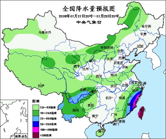 27日20時(shí)至28日20時(shí),新疆西部和天山附近地區(qū)、青藏高原大部、甘肅中部、寧夏北部、陜西南部、內(nèi)蒙古大部、黑龍江西部、華北西北部、黃淮中南部、江漢西部、西南地區(qū)大部以及江南中東部、廣東東部、海南、臺(tái)灣等地有小到中雨或雷陣雨,其中,四川東南部、云南西部和南部的部分地區(qū)有大雨;福建中東部、浙江中南部、廣東東部等地有大雨或暴雨,福建東北部、浙江東南部的部分地區(qū)有大暴雨;臺(tái)灣大部將有暴雨或大暴雨,局地有特大暴雨,上述部分地區(qū)并將伴有短時(shí)雷雨大風(fēng)或冰雹等強(qiáng)對(duì)流天氣。內(nèi)蒙古中東部、東北大部有4~5級(jí)偏北或偏南風(fēng)。東海南部海面、臺(tái)灣以東洋面、臺(tái)灣海峽、巴士海峽、巴林塘海峽、南海東北部、臺(tái)灣、福建沿海、浙江南部沿海將有8-11級(jí)大風(fēng),“鳳凰”中心經(jīng)過的附近海面風(fēng)力可達(dá)12-14級(jí)。