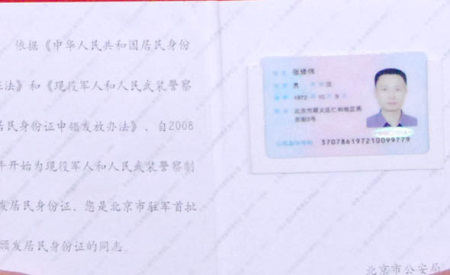 在由軍隊發(fā)放居民身份證工作領導小組和北京市公安局、北京衛(wèi)戍區(qū)聯(lián)合舉行的首發(fā)式上,駐京部隊的460多名官兵拿到了《中華人民共和國居民身份證》。