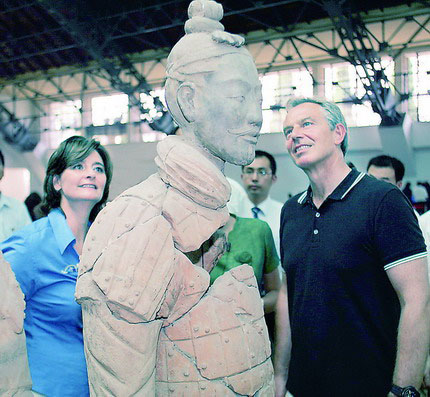 中國人民外交學(xué)會的邀請,英國前首相布萊爾作為奧運會貴賓于8月15日至23日訪華。8月18日下午,布萊爾攜同家人專程來陜參觀了秦始皇兵馬俑博物館。省長袁純清陪同參觀。