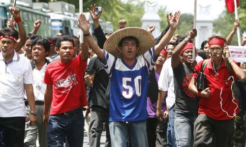 而據(jù)泰國機場管理部門三十一日披露,因受民盟集會示威影響而關(guān)閉的泰國南部布吉、甲米兩機場三十一日再度重新啟用。據(jù)泰方機場管理部門介紹,包括布吉機場在內(nèi)的泰國南部合艾、甲米三座機場二十九日遭數(shù)千名示威者沖擊,被迫暫時關(guān)閉。受此影響,逾一萬五千多名旅客滯留在布吉島,其中中國游客超過三百人。他信同學任最高武裝司令