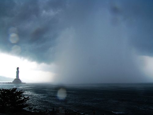 8月29日上午10時許,在三亞南山景區(qū)的海面上出現(xiàn)水龍卷,俗稱“龍吸水”,其持續(xù)時間約10分鐘。省氣象臺氣象專家稱,“龍吸水”只是一種天氣現(xiàn)象,與地震沒有必然聯(lián)系,并非地震的預示。