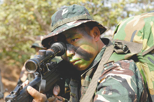 何祥美和他心愛的狙擊步槍。 穆瑞林 徐軍剛攝