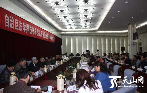 “自治區(qū)法學(xué)界法律界深入開展反分裂斗爭(zhēng)座談會(huì)”現(xiàn)場(chǎng)。