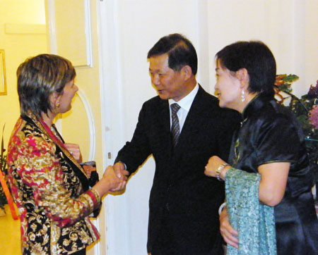 孫玉璽大使和夫人歡迎意大利客人。
