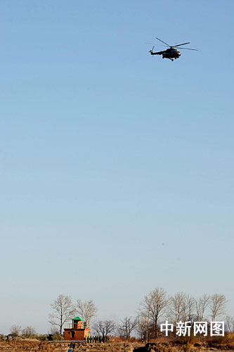 14日上午,有關(guān)人員乘直升機(jī)抵達(dá)黑瞎子島參加中俄界樁揭幕儀式。作 者:吳兆飛