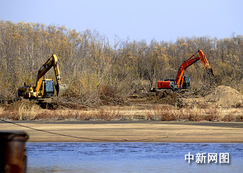黑瞎子島中俄邊界確定后,中方大型機(jī)械登島修路。作 者:吳兆飛
