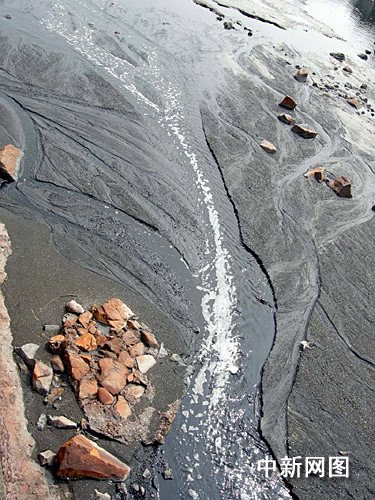 岸邊的灘涂已經(jīng)完全變成了黑色
