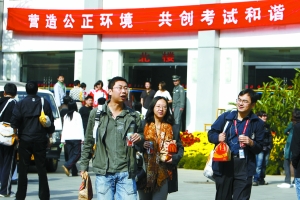 昨日11時許,北京勞動保障職業(yè)學院,考生們完成考試走出考場。孫純霞 攝