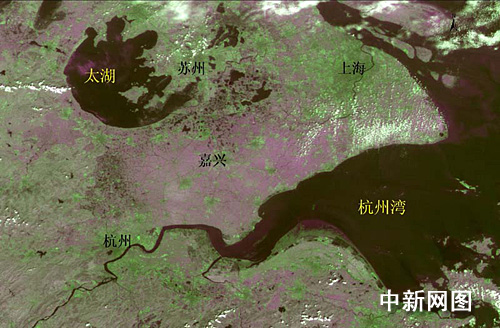 “環(huán)境減災(zāi)”A、B星拍攝并下傳的長三角地區(qū)影像圖。