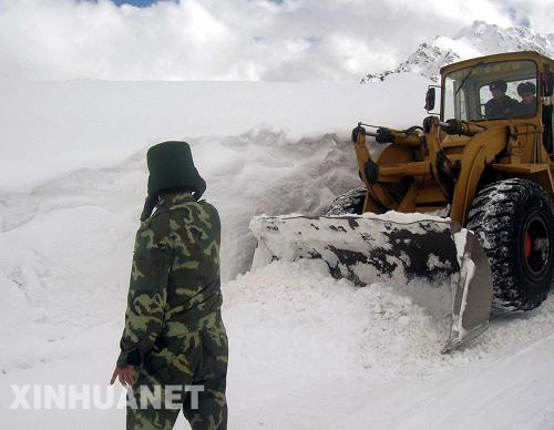 持續(xù)強(qiáng)降雪和雪崩造成川藏公路中斷以后,負(fù)責(zé)公路養(yǎng)護(hù)并擔(dān)負(fù)搶通任務(wù)的武警交通四支隊(duì)出動(dòng)兵力120余人次,裝載機(jī)6臺(tái),自卸車4臺(tái),從6個(gè)點(diǎn)同時(shí)推進(jìn),對(duì)川藏公路進(jìn)行搶通。(張申酉)