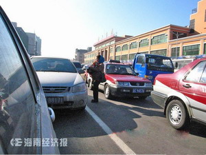 記者昨日下午在海口南大橋處看見,紅燈亮起時,一名殘疾男子趕緊走上馬路中央,向等候綠燈的司機討錢,當(dāng)車輛準(zhǔn)備行駛時,又匆忙跑到馬路邊上。