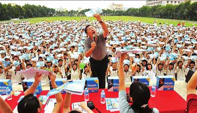 大約4年后,在甘肅蘭州,蘭大畢業(yè)生李陽創(chuàng)辦的《瘋狂英語》,依靠“教人張嘴說英語”的一招鮮,也開始了持續(xù)10多年風靡大江南北的歷程。