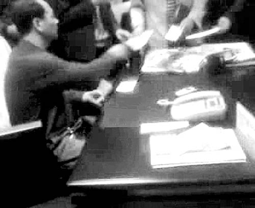 “山西直播”拍攝的視頻內(nèi)容顯示,礦方一手檢驗記者證一手發(fā)錢。“視頻顯示,錢是憑條發(fā)放的,找到這些條子,不難查清誰領(lǐng)了封口費!贝黩斳娬f。
