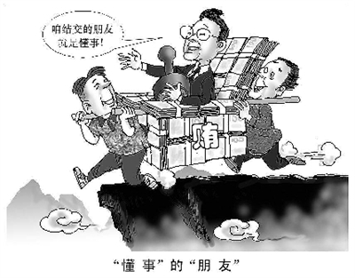 2007年初,胡錦濤總書記在中央紀(jì)委七次全會(huì)上強(qiáng)調(diào)指出,各級(jí)領(lǐng)導(dǎo)干部要慎重對(duì)待朋友交往,堅(jiān)持擇善而交。實(shí)踐證明,領(lǐng)導(dǎo)干部交友問題絕不僅僅是關(guān)系個(gè)人生活的小節(jié)問題,而是關(guān)系黨風(fēng)廉政建設(shè)和領(lǐng)導(dǎo)干部形象的政治問題。從一些領(lǐng)導(dǎo)干部腐敗案件看,絕大部分都是從交友不慎開始?jí)櫬涞摹R恍﹦e有用心者正是看中了領(lǐng)導(dǎo)干部手中的權(quán)力,才想方設(shè)法地與領(lǐng)導(dǎo)干部接近、交往,搞權(quán)錢交易,把領(lǐng)導(dǎo)干部手中的權(quán)力悄然變成了違法亂紀(jì)、損人利己的利器。云南省個(gè)舊市原常務(wù)副市長(zhǎng)王建國(guó)就是一個(gè)因交友不慎墮落的典型。從他擔(dān)任建水縣煙草公司副經(jīng)理開始,一個(gè)一開始是建筑包工頭、后在王建國(guó)幫助下成為建筑公司老板的人,就給他送錢。他的官當(dāng)?shù)侥睦,此人就送到哪里。王建?guó)受賄117萬元人民幣和1萬歐元,僅此一人就送給他94萬元。