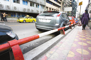 渝中區(qū)較場口附近新增設的道路防撞護欄。 記者 羅偉 攝