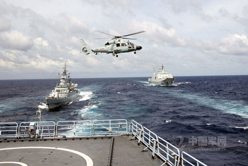 海上戰(zhàn)艦馳騁,空中戰(zhàn)鷹盤旋。11月上旬,南海艦隊(duì)組織支援艦、登陸艦、驅(qū)逐艦、護(hù)衛(wèi)艦、艦載直升機(jī),首次在南沙附近海域開展了一次綜合作戰(zhàn)支援演練。他們在成功組織“兩橫一縱”海上補(bǔ)給訓(xùn)練的同時(shí),演練了艦載直升機(jī)起降、懸停、偵察、模擬救援等課目,使艦機(jī)協(xié)同能力有了新的提高。(中國軍網(wǎng)發(fā) 饒燕文攝)