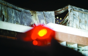 昨晚10時(shí)40分許,食品樓外已被拉起兩百多米的警戒線,大批保安守在四周維持秩序。此時(shí),十余消防車陸續(xù)趕到參與滅火。頓時(shí),水柱如噴泉般不停落下。借助照明車的燈光,可見實(shí)驗(yàn)室外部大面積的鐵皮發(fā)生了變形,并被熏黑,室內(nèi)則是漆黑一片。