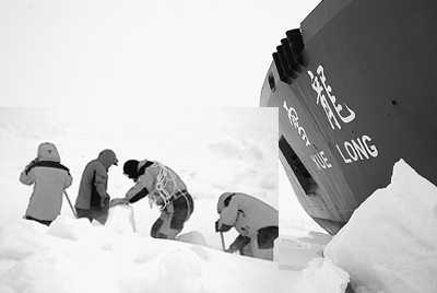 對前所未見的嚴(yán)重冰情,雪龍船破冰的方式不斷根據(jù)冰情調(diào)整,不全靠速度沖擊。11月20日上午有一次全力沖擊,前進(jìn)了43米,但船騎上冰后不能后退,直到3個小時(shí)后才開始滑動后退。11月21日船在南緯68度59.398分位置破冰時(shí)又有一次長時(shí)間陷停。