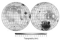 日前,由嫦娥一號(hào)衛(wèi)星測(cè)控系統(tǒng)VLBI分系統(tǒng)總體技術(shù)主任設(shè)計(jì)師、中國(guó)科學(xué)院上海天文臺(tái)研究員平勁松、黃倩,北京航天飛行控制中心唐歌實(shí)、曹建峰等人完成了全月球地形圖測(cè)繪,并在2008年第11期《中國(guó)科學(xué)G輯》上發(fā)表題為《基于嫦娥一號(hào)衛(wèi)星激光測(cè)高觀測(cè)的月球地形模型CLTM-s01》的論文,介紹利用嫦娥一號(hào)月球探測(cè)衛(wèi)星激光高度計(jì)數(shù)據(jù)得到的月球地形模型。
