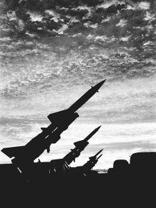 突然,霹靂震天,地平線上猛地躥起一條條“火龍”,拖著銀白的煙柱直刺蒼穹。轉(zhuǎn)眼,“火龍”變作一顆顆熾熱的流星,怒吼著、呼嘯著,把一架架行蹤詭秘的“敵”機打得粉身碎骨……