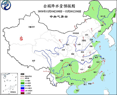 2008年12月4日8時—12月5日8時全國降水量預報圖