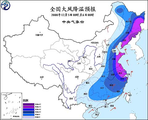2008年12月5日08時(shí)全國(guó)大風(fēng)降溫預(yù)報(bào)圖