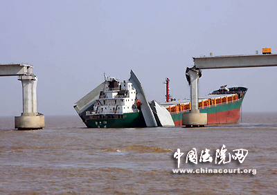 該起事故發(fā)生于今年3月27日1時許,行駛中的臺州籍“勤豐128”貨輪由于操作失誤,撞上了在建設之中的金塘大橋,致使這座連接寧波與舟山的我國第三長跨海大橋遭受重大損失,并造成4名船員死亡。事故發(fā)生后,中國人民財產(chǎn)保險股份有限公司浙江省分公司作為金塘大橋保險人,向舟山連島工程指揮部支付了保險賠款16216772元。4月25日,該公司以金塘大橋工程保險人的身份,代位被保險人連島工程指揮部及施工單位,向肇事方“勤豐128”輪登記的船舶所有人張友法、朱信福、林寧俊和雖未登記但已實際控制的船舶所有人王玉祥、王兆祥、王琳,以及該輪的經(jīng)營人臺州市路橋某船務公司提起保險代位求償訴訟,索賠2000萬元,后變更為16216772元。7月28日,連島工程指揮部也向上述被告提起訴訟,要求索賠保險公司未予賠付的事故后各類施救費、部分未賠付的清理殘骸費用共計12447354元。后來,兩案原告又分別撤回對王玉祥、王兆祥、王琳及臺州市路橋勤豐船務有限公司的起訴。