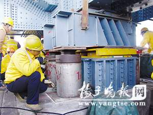 昨天上午10點,大橋上的臨時交通封閉已開始。記者來到修復(fù)的地方,也就是4號橋墩的正上方橋面,施工現(xiàn)場重演11月27日的“12只千斤頂為大橋‘撐腰’”一幕,只不過,這次是拆下臨時支座,將橋底鋼梁的受力點轉(zhuǎn)移到新支座上。