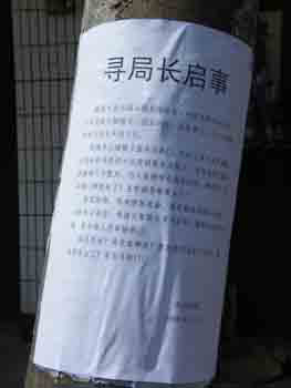 非常難,但并非不可能,我必須找到平衡點(diǎn)。幾經(jīng)思索,我終于想出了“尋局長(zhǎng)啟事”的方式。我認(rèn)為:第一,啟事方式能使事件套上法律防撞墊,免于和“大字報(bào)”沾邊。第二,形式的新奇、幽默能吸引媒體介入,借以表達(dá)強(qiáng)烈民意。第三,在幽默搞笑的氣氛中完成對(duì)不作為官員的輿論威懾,更是一種讓強(qiáng)烈民憤的軟著陸,非常符合中國(guó)國(guó)情。