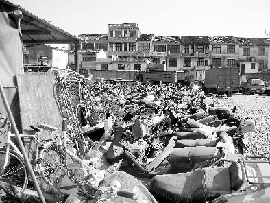 過了一會兒,一輛閃著警燈的施救車到了現(xiàn)場,把兩輛車拖走了。